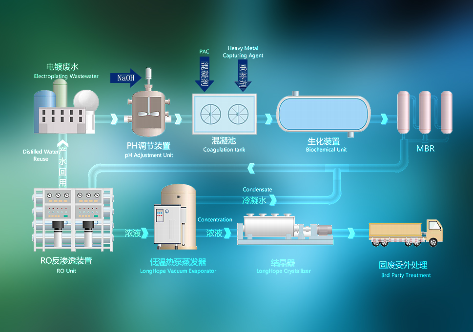 本公司研發(fā)的熱泵驅(qū)動<無熱源>蒸發(fā)器可顯著減少工業(yè)廢液處置費(fèi)用,可獲取85-95%的蒸餾液回收再利用,小部分的濃縮液(約占原液的5-15%)富集了鹽分或重金屬必須另外處置。在材料表面處理行業(yè)